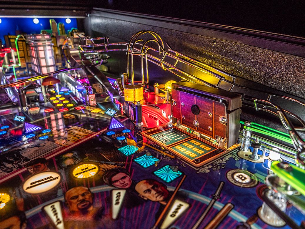 Para aumentar las apuestas, el pinball de John Wick introduce el nuevo sistema de combate dinámico con IA de Stern, una innovación que trae el frenético combate de las legendarias películas al juego. El equipo de Stern ha creado un sistema de IA primitivo de videojuegos para controlar las luces enemigas en el campo de juego, diferenciando las máquinas de pinball de John Wick de las anteriores, donde todas las luces eran controladas por acciones del jugador, temporizadores y generación de números aleatorios. En este nuevo sistema de combate con IA, los iconos enemigos responden al comportamiento del jugador e iluminan dinámicamente el campo de juego para desafiar al jugador. Los enemigos se mueven tácticamente con este software dinámico para contrarrestar los objetivos del jugador, creando un desafío único en cada sesión de juego. El sistema también cuenta con un nuevo reproductor de video de acción que refleja dinámicamente la acción del jugador: a medida que derrotas a tres enemigos, verás clips de video de John Wick haciendo lo mismo en las películas.