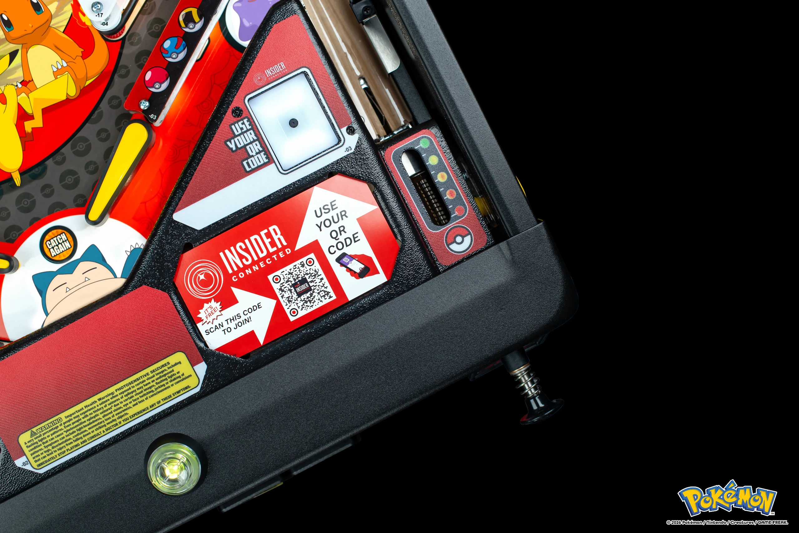 Gracias al galardonado sistema Insider Connected de Stern Pinball, Pokémon by Stern Pinball lleva la experiencia un paso más allá al conectar a los Entrenadores y sus aventuras entre distintas máquinas y ubicaciones. Cuando los jugadores juegan identificados con su cuenta de Stern Insider Connected, los Pokémon que capturen se añadirán a su colección Pokémon dentro de Insider Connected, que podrá consultarse en la aplicación.
