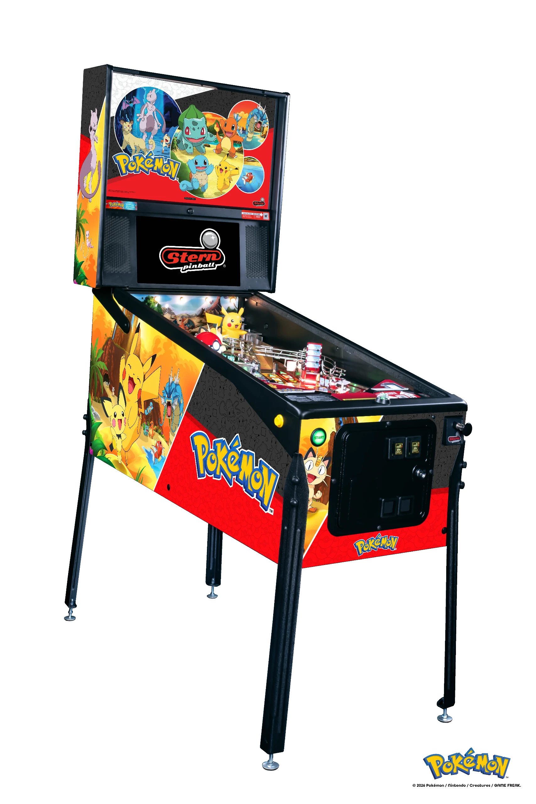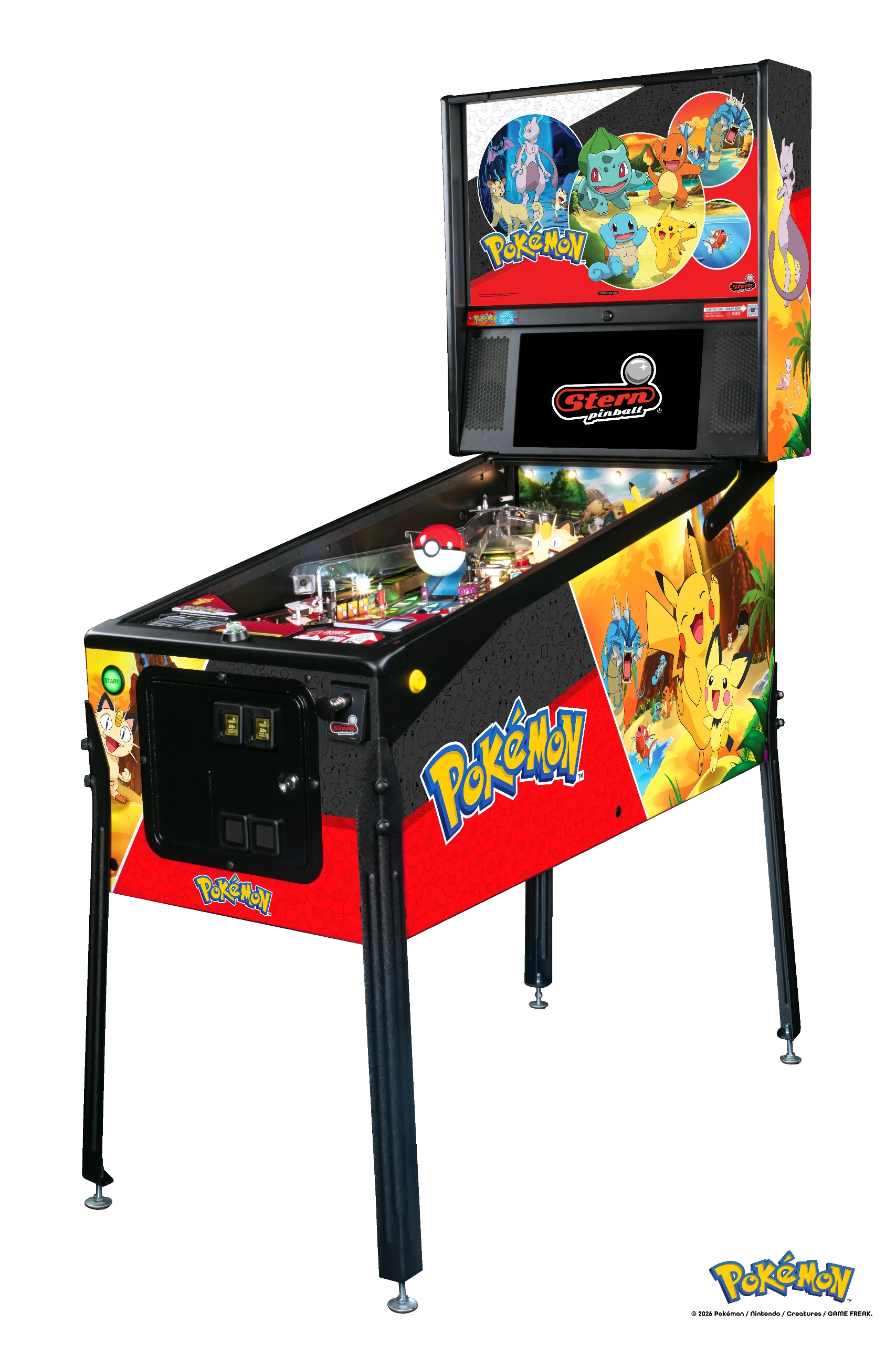 Hoy, Stern Pinball, Inc., el mayor fabricante de máquinas de pinball del mundo, en colaboración con The Pokémon Company International, anunció y lanzó una nueva máquina de pinball: Pokémon by Stern Pinball. Desde que Pokémon debutó en Japón en 1996, los Entrenadores de todo el mundo han emprendido innumerables aventuras dentro de esta icónica franquicia de entretenimiento, todo con el objetivo de convertirse en grandes Entrenadores Pokémon. Impulsada por la tecnología SPIKE 3 de Stern, esta dinámica máquina lleva por primera vez al mundo del pinball la emoción de capturar Pokémon, enfrentarse a rivales y entrenarlos. Stern invita a los jugadores a situarse frente al tablero y poner a prueba sus habilidades como Entrenadores Pokémon, luchando contra rivales y enfrentándose al amenazante Team Rocket en intensos encuentros. Pokémon by Stern Pinball ya está disponible en los modelos Pro, Premium y Limited Edition (LE).